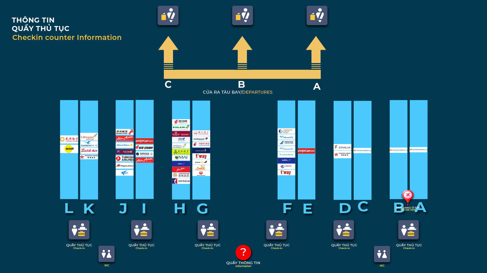 ÒNG CHỜ KHÁCH THƯƠNG GIA, NHÀ HÀNG, VĂN PHÒNG ĐẠI DIỆN CÁC HÃNG HÀNG KHÔNG