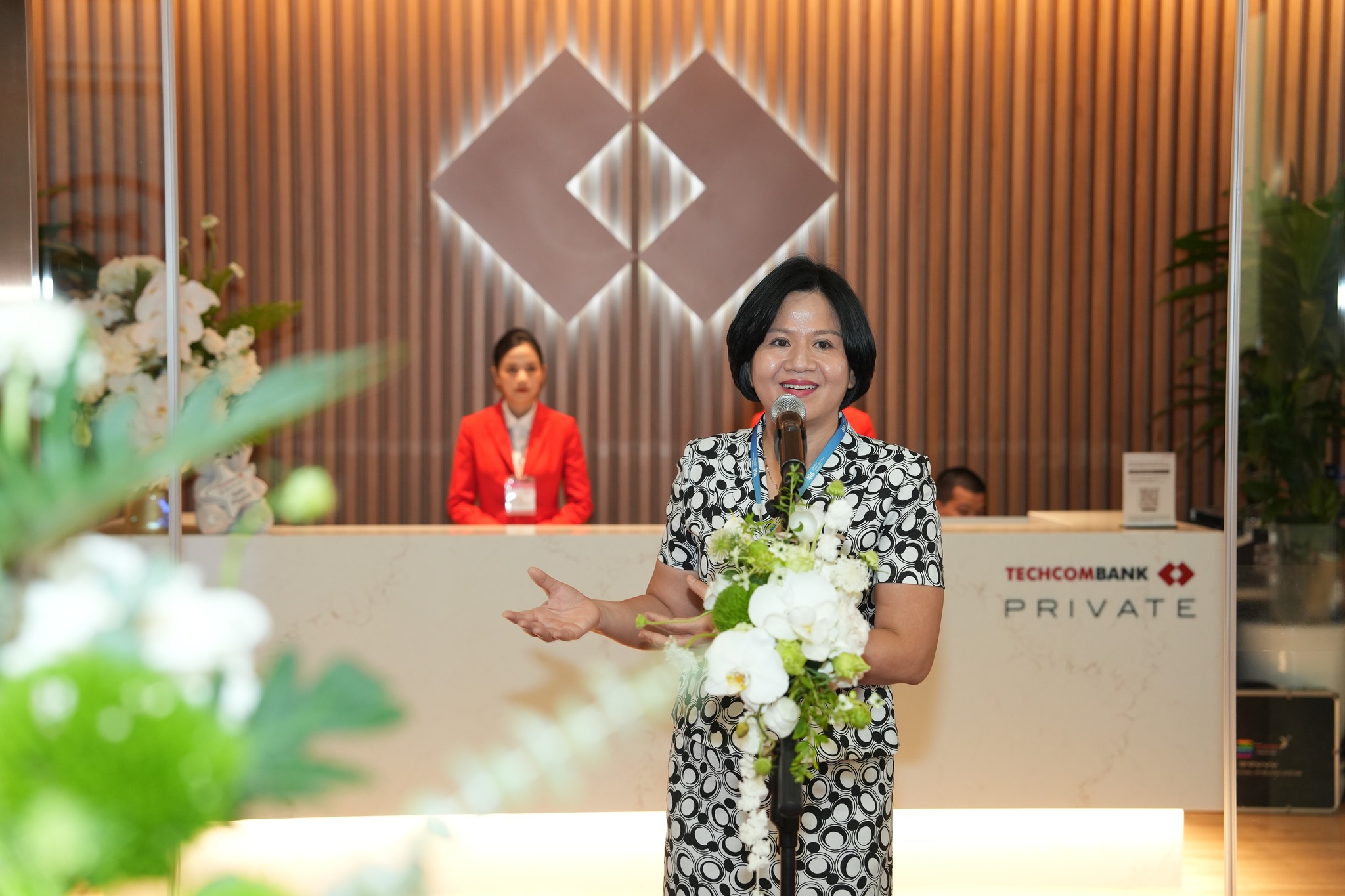 Buổi lễ khai trương có sự hiện diện của đại diện lãnh đạo các bên liên quan. Phát biểu tại buổi lễ, bà Nguyễn Thị Kim Ngân – Phó Giám đốc Cảng HKQT Nội Bài gửi lời chúc mừng đến Taseco và Techcombank, đồng thời nhấn mạnh: “Trên hành trình hướng tới chuẩn 4 sao, 5 sao toàn cầu, sự đồng hành của các doanh nghiệp dịch vụ như Taseco và Techcombank là yếu tố không thể thiếu. Techcombank Private Lounge không chỉ là nơi nghỉ chân, mà là không gian tinh hoa – nơi hội tụ tiện nghi, yên tĩnh và dịch vụ đỉnh cao, xứng đáng là biểu tượng cho chuẩn mực đón tiếp tại sân bay.”