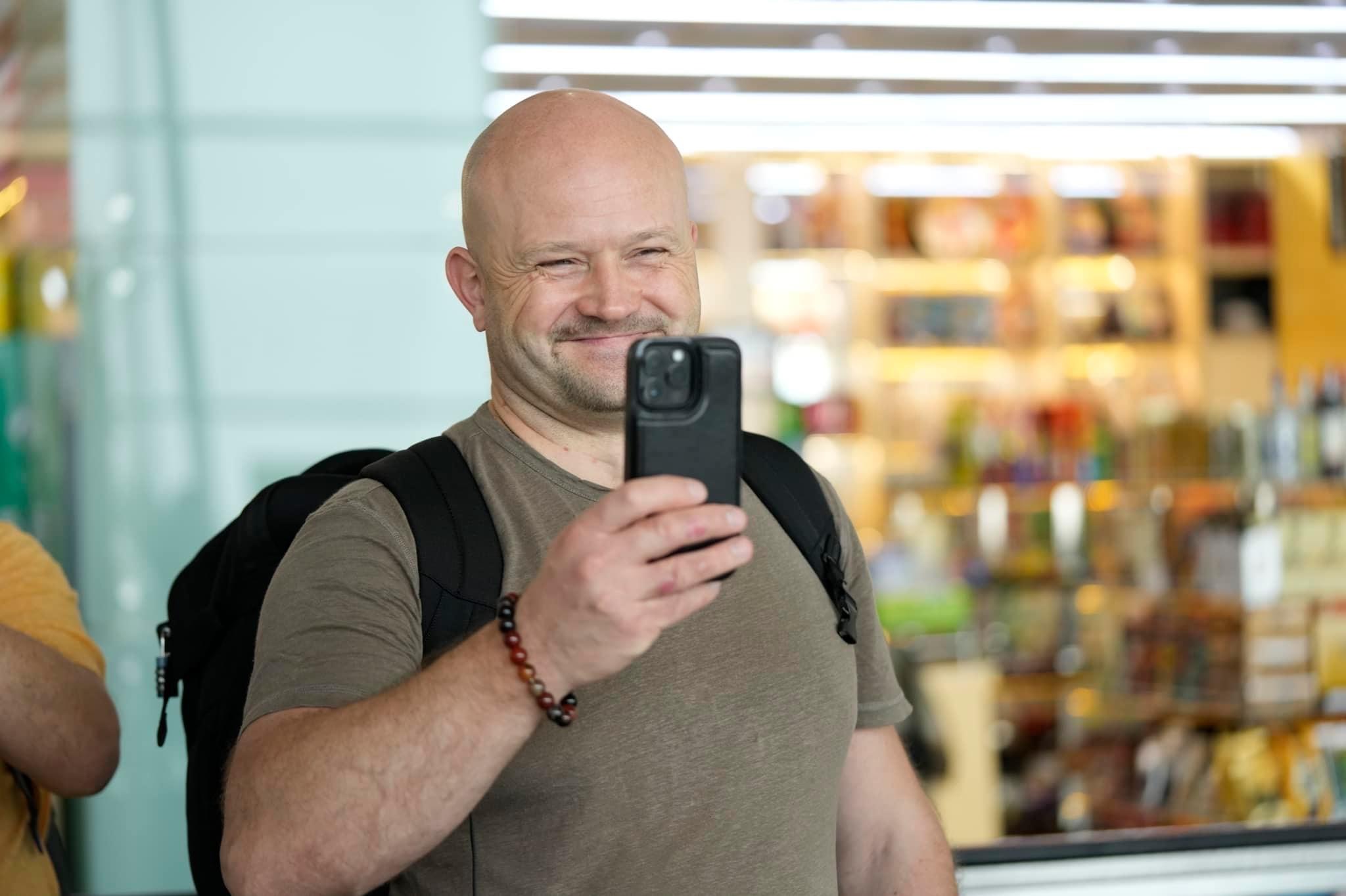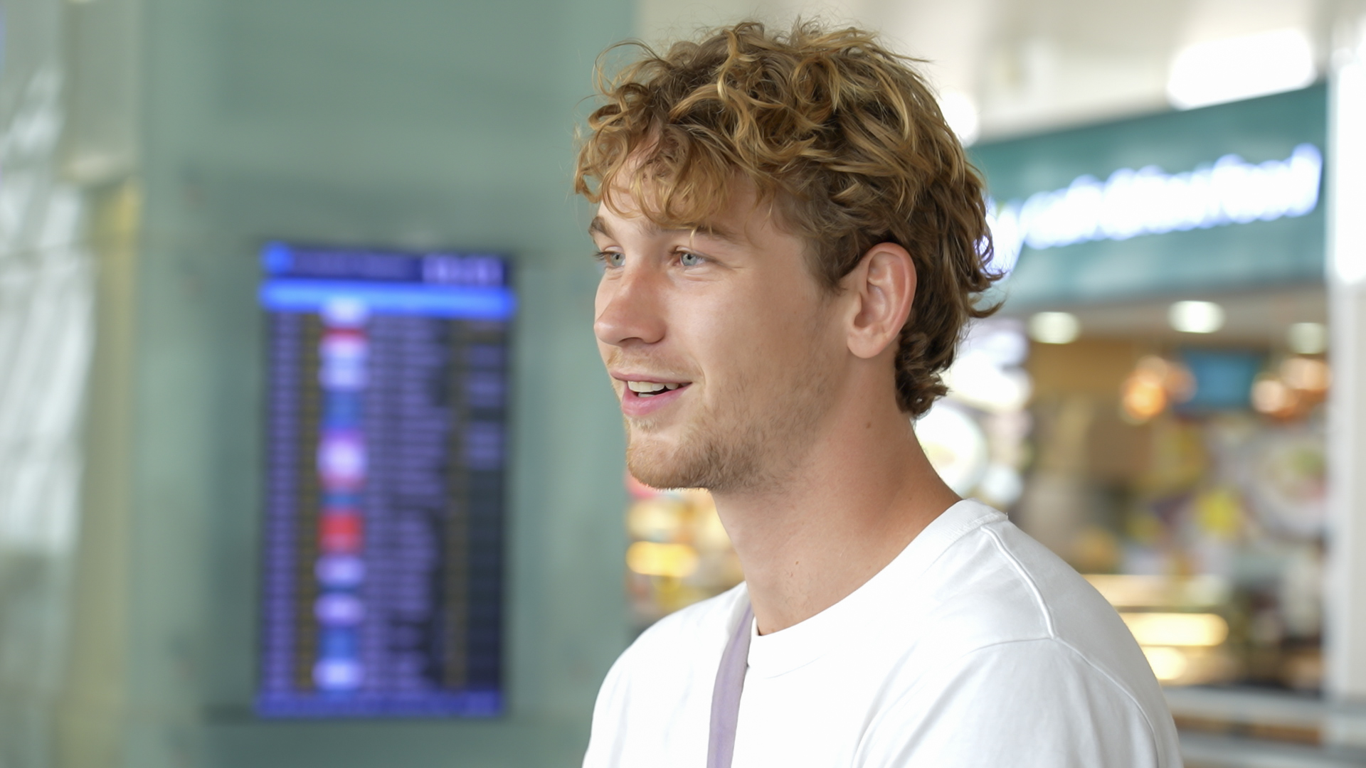 Một nam hành khách người Hà Lan thích thú theo dõi chương trình